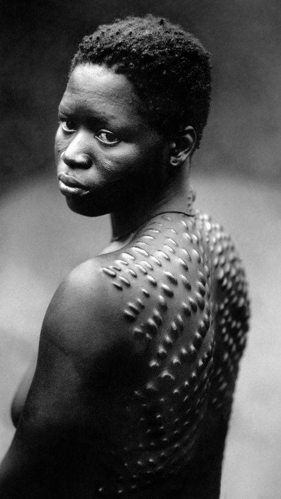 アフリカの民族の一部では、肌の傷跡が若い女性の装飾とされている