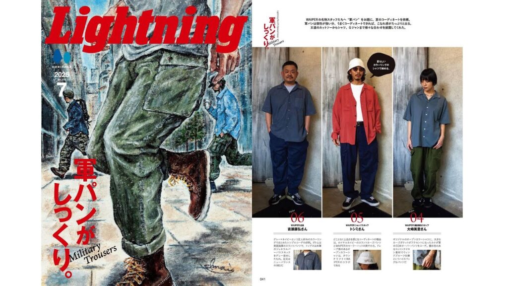 沖縄や九州では梅雨に入り、今年もいよいよ暑い夏がやってきます。暑さと湿度で、服装もできるだけ涼しく簡単なものになりがちだけれど、そんな季節こそ取り入れたいのが「軍パン」。いやいや、ちょっと暑いし重くない? なんて思うかもしれないけれど、作りはしっかりしているし、ゆったりとしていて動きやすくラクチン。見た目より通気性もいいし何よりもボリューム感があって、Tシャツだけでなくシャツやジャケットにも合うのが軍パンなのです。ということで今月のテーマは「この季節、軍パンがしっくりきます。」です。ザ・リアルマッコイズのタイガーカモやバズリクソンズのチノパン、ジェラードのモンキーパンツなど、各ブランドが提案するミリタリートラウザースを深掘り。さらにカリスマショップスタッフによるコーディネイトもレクチャーします。