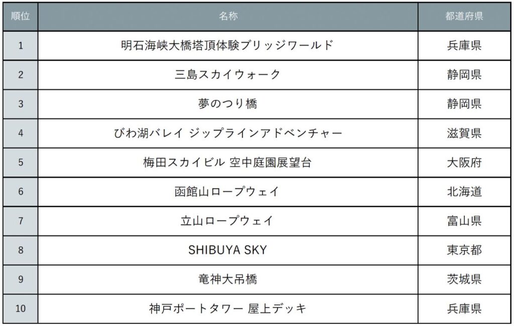 パノラマ絶景がスゴい…!「空中散歩」が楽しめるスポットTOP10 6か月前 パノラマ絶景がスゴい…!「空中散歩」が楽しめるスポットTOP10 Source: CanCam パノラマ絶景がスゴい…!「空中散歩」が楽しめるスポットTOP10 関連まさに非日常な絶景スポット♡絶景が満喫できる「観覧車」ランキングTOP10ファッション絶対行きたい♡冬の絶景スポットランキングTOP10が美しすぎるファッションそんな体験までできるの…!?大人が楽しめる「工場見学&社会科見学スポット」TOP10ファッション