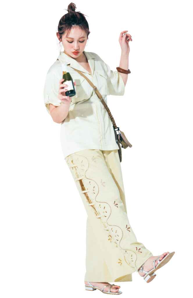 【7/13のコーデ】佐々木莉佳子がお手本♡肌ちらパンツのワントーンスタイル