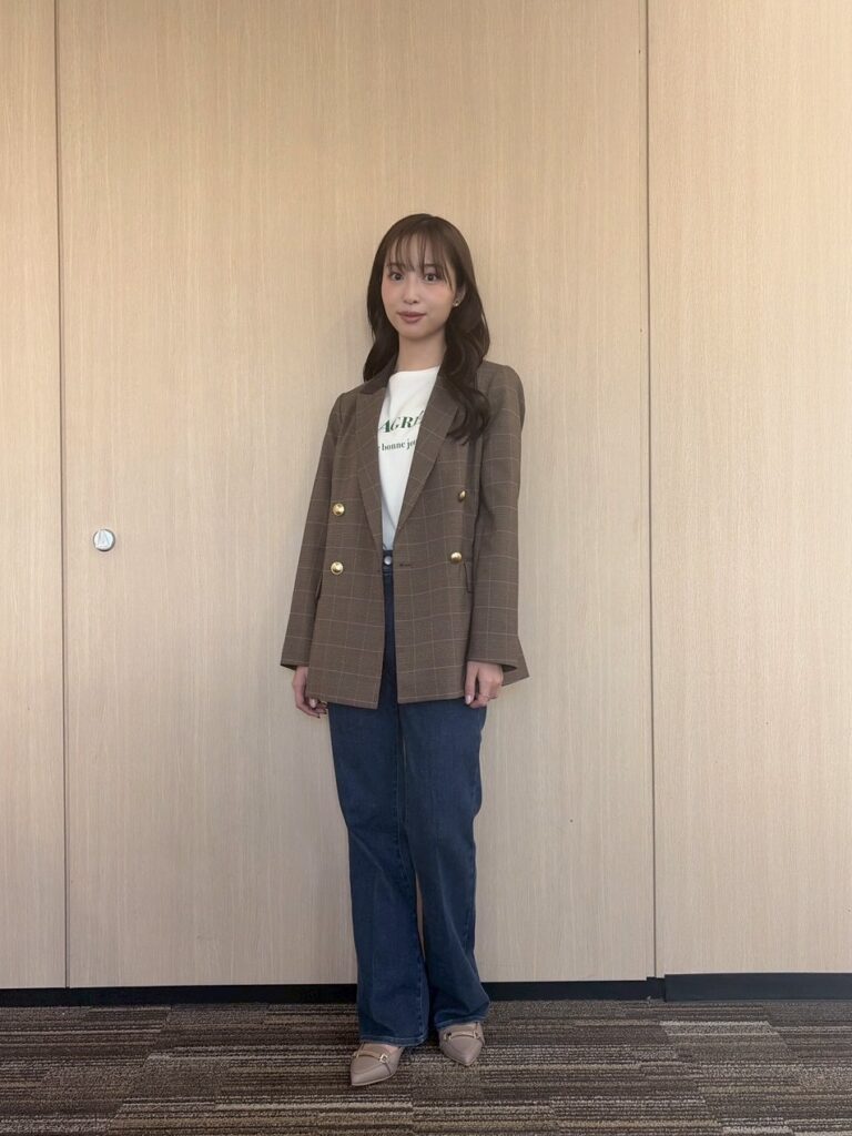 グリーンロゴが効いたプレッピーコーデ!『めざましテレビ』お天気キャスター・林佑香さんの毎日コーデ【10月21日分】