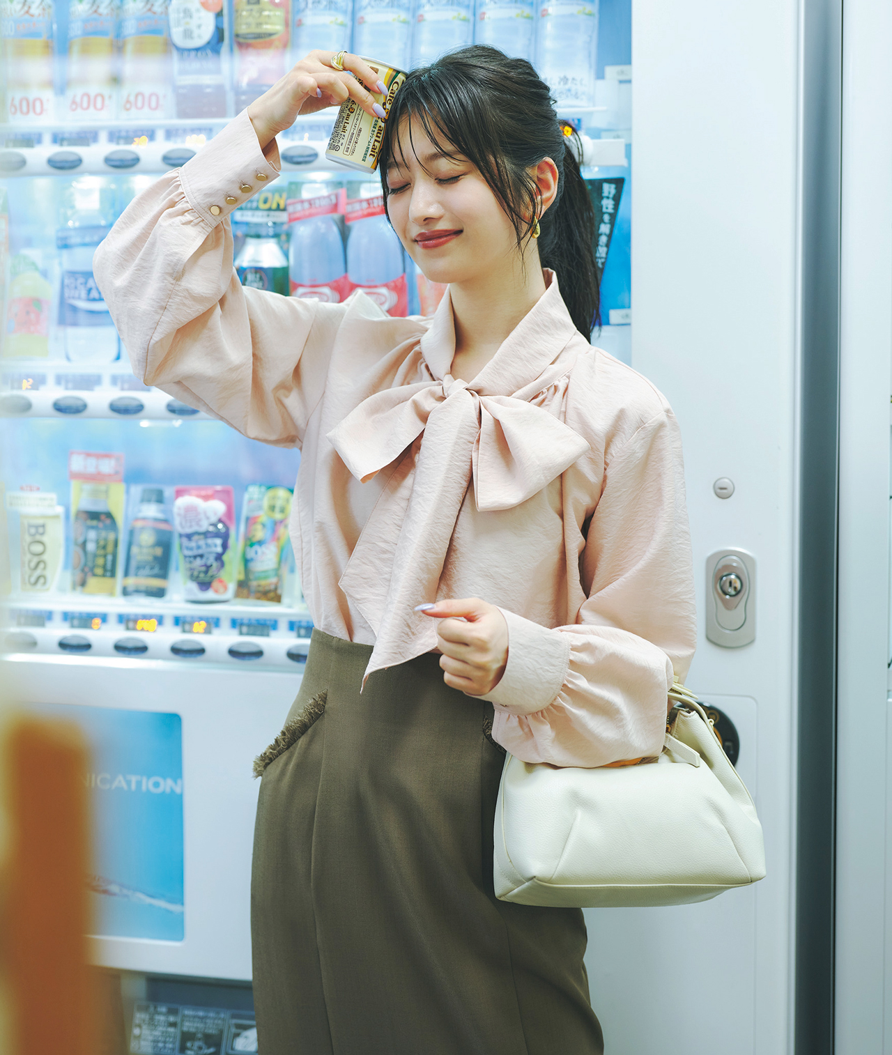 ファッション【10/23のコーデ】顔映り良く見せるなら♡ ピンクのボウタイブラウスが使える!