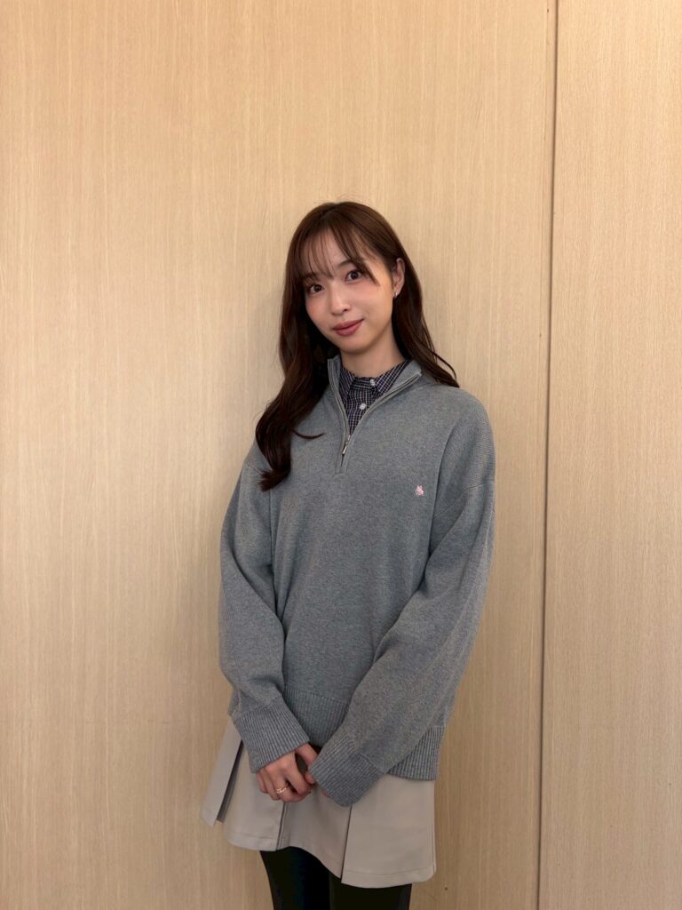 【写真9枚】盛れるグレーニットにプレッピー要素を足してみたら…? 人気お天気キャスター・林佑香さんのコーデ【11月13日分】