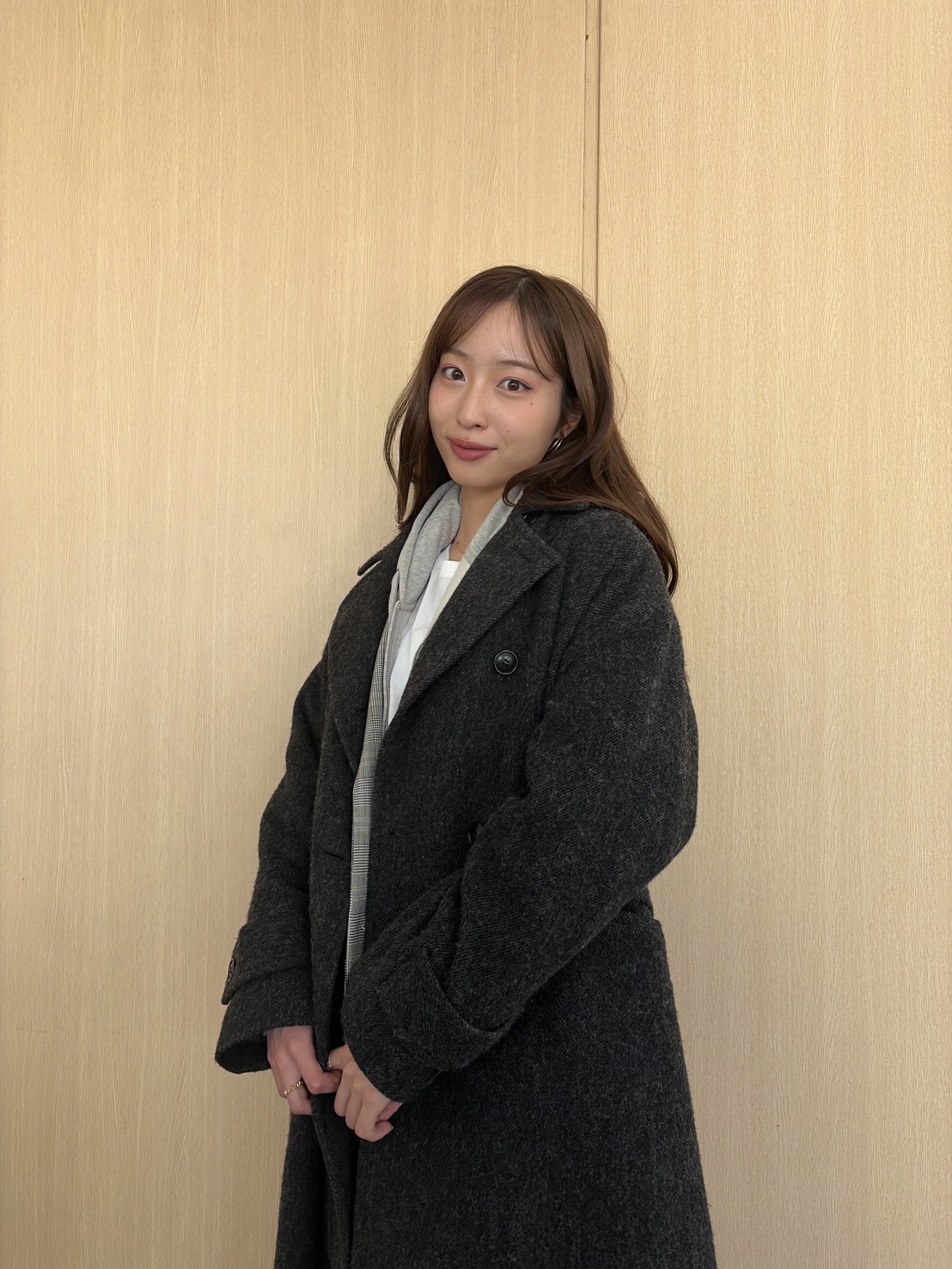ファッショングレーのフレアミニですらりと美脚見え♡ めざましお天気キャスター・林佑香さんの毎日コーデ【2月10日分】