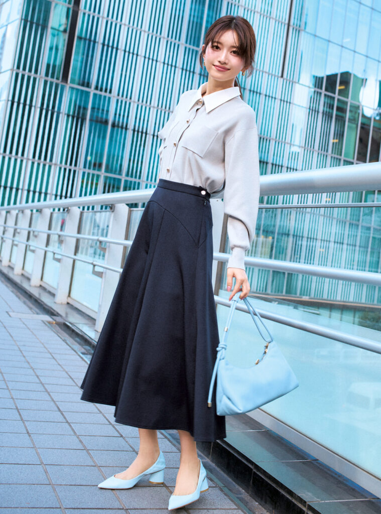 【4/8のコーデ】ミディ丈スカートで作るクラシカルスタイルで知的なお姉さんに♡